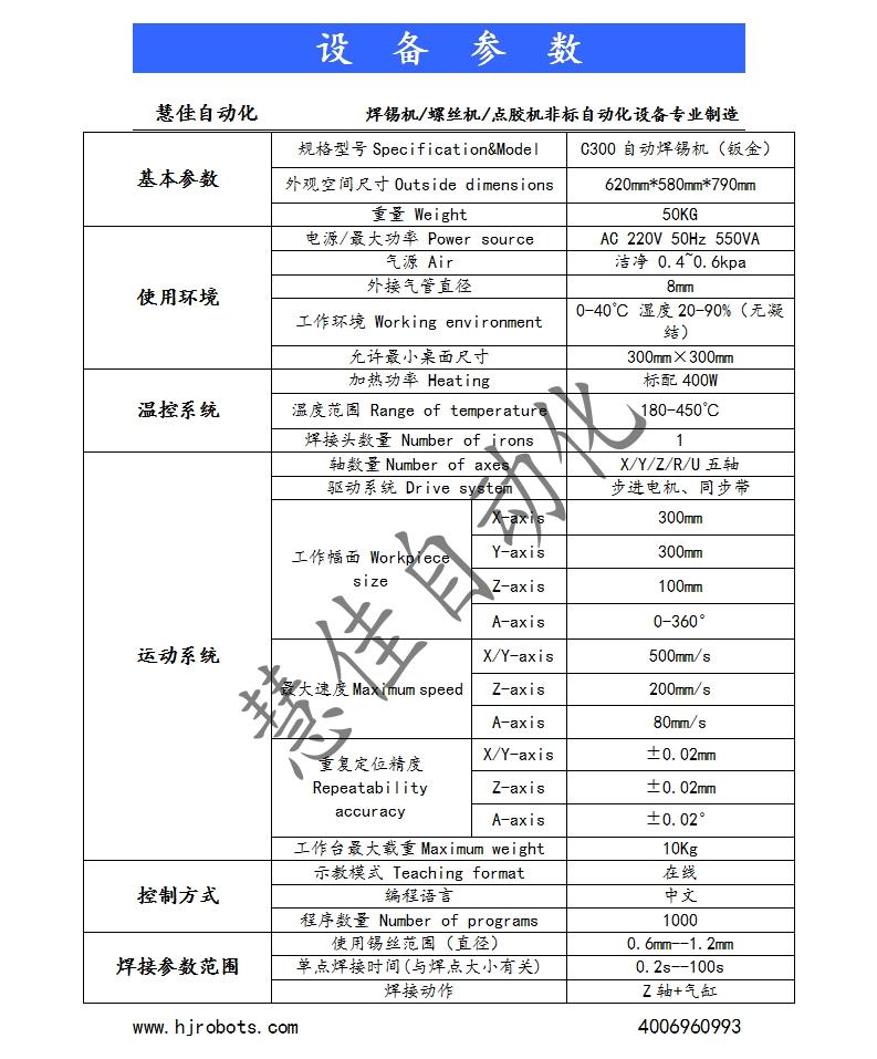 本机型为钣金机架、单工位带旋转轴焊锡机; 控制系统为PLC模块+5寸触摸屏编程器; 拥有12组输入/输出IO接口,扩展自动化功能;